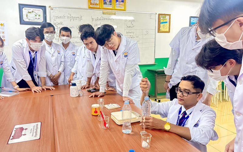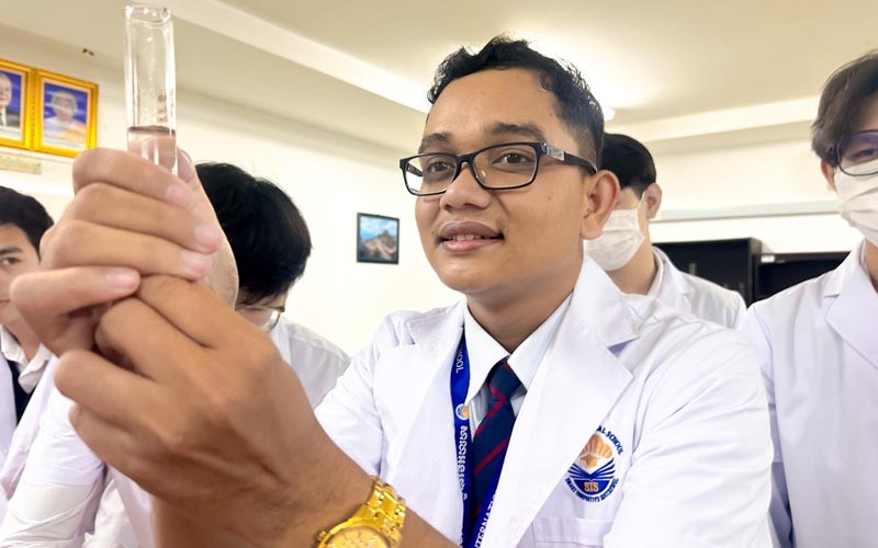 ប្អូនៗសិស្សានុសិស្សថ្នាក់ទី១១ នៃសាលាអន្តរជាតិអេស អាយ អេស បានចូលធ្វើពិសោធន៍បន្ទាប់ពីសិក្សាទ្រឹស្ដីហើយទៅលើប្រធានបទ៖ ទង្វើសូលុយស្យុង